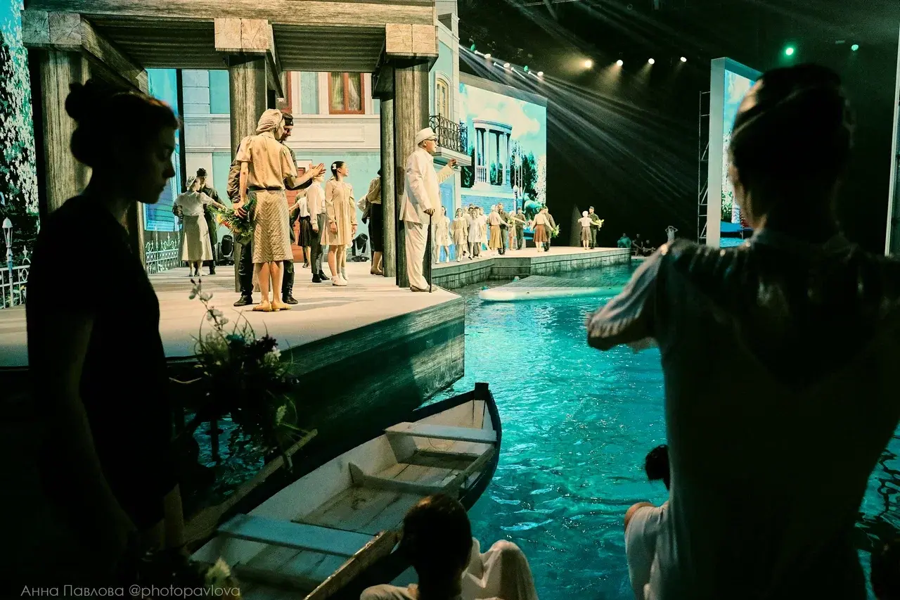 Действие разворачивается одновременно в трёх пространствах: на сцене, на воде и в воздухе. Вас ждут элементы синхронного плавания, прыжков в воду, циркового искусства и оригинальной хореографии. Современные сценические технологии, подводная съемка и масштабные декорации создают полный эффект погружения в эпоху.
